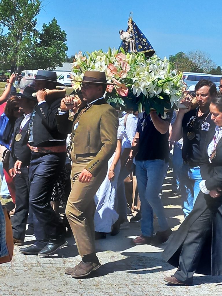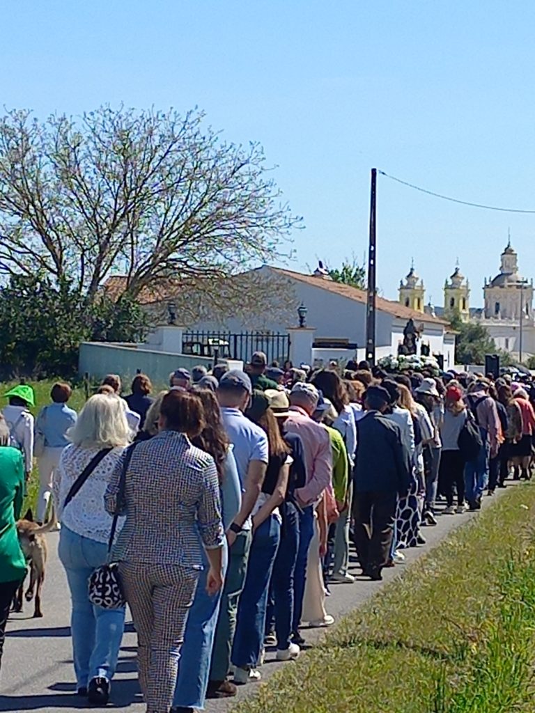 Départ toujours sous le soleil ce 27 Avril pour continuer notre périple dans l’Alentejo et vers la côte. Un arrêt au beau bourg Viana de l’Alentejo. Surprise on tombe sur une procession relative à la Romaria a Cavalo. Du 22 au 27 avril, les pèlerins parcourront à nouveau 150 kilomètres, à cheval ou en calèche, pour conduire Notre-Dame de Boa Viagem, de Moita, à Notre-Dame d’Aires, à Viana do Alentejo.